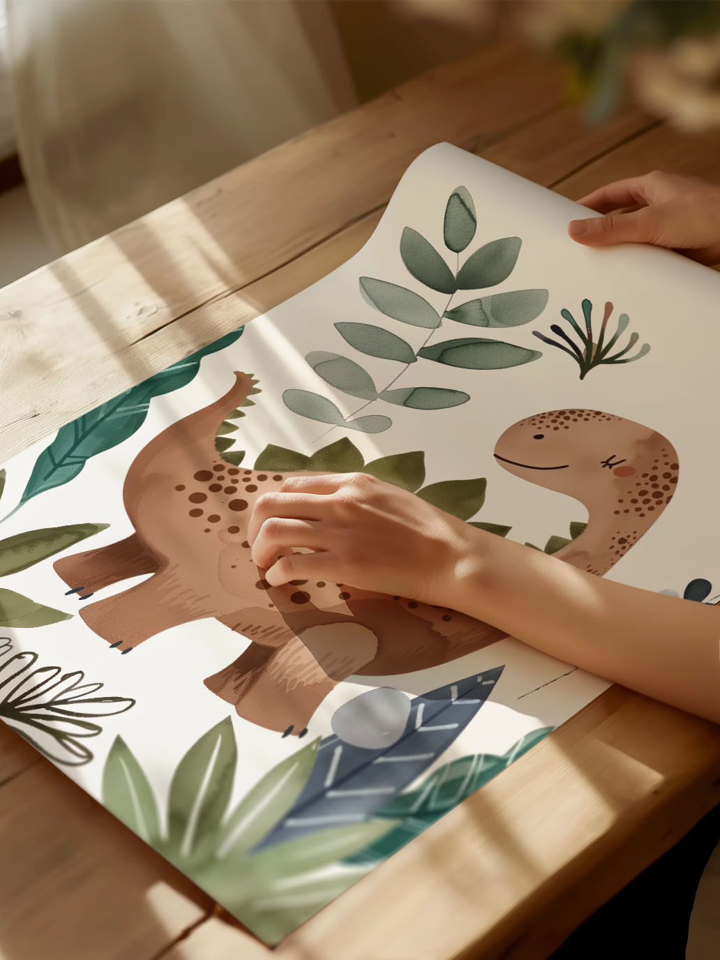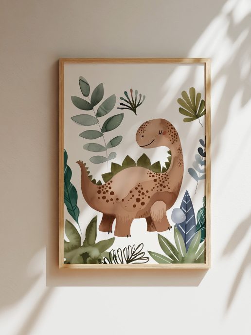 Wprowadź magię dawnych czasów do pokoju swojego malucha z plakatem „Dinozaur Wojtek”. Ten wyjątkowy plakat przedstawia uroczo zilustrowanego dinozaura Stegozaura w otoczeniu bujnej roślinności. Idealny wybór dla małych miłośników dinozaurów, który ożywi wnętrze i pobudzi wyobraźnię.